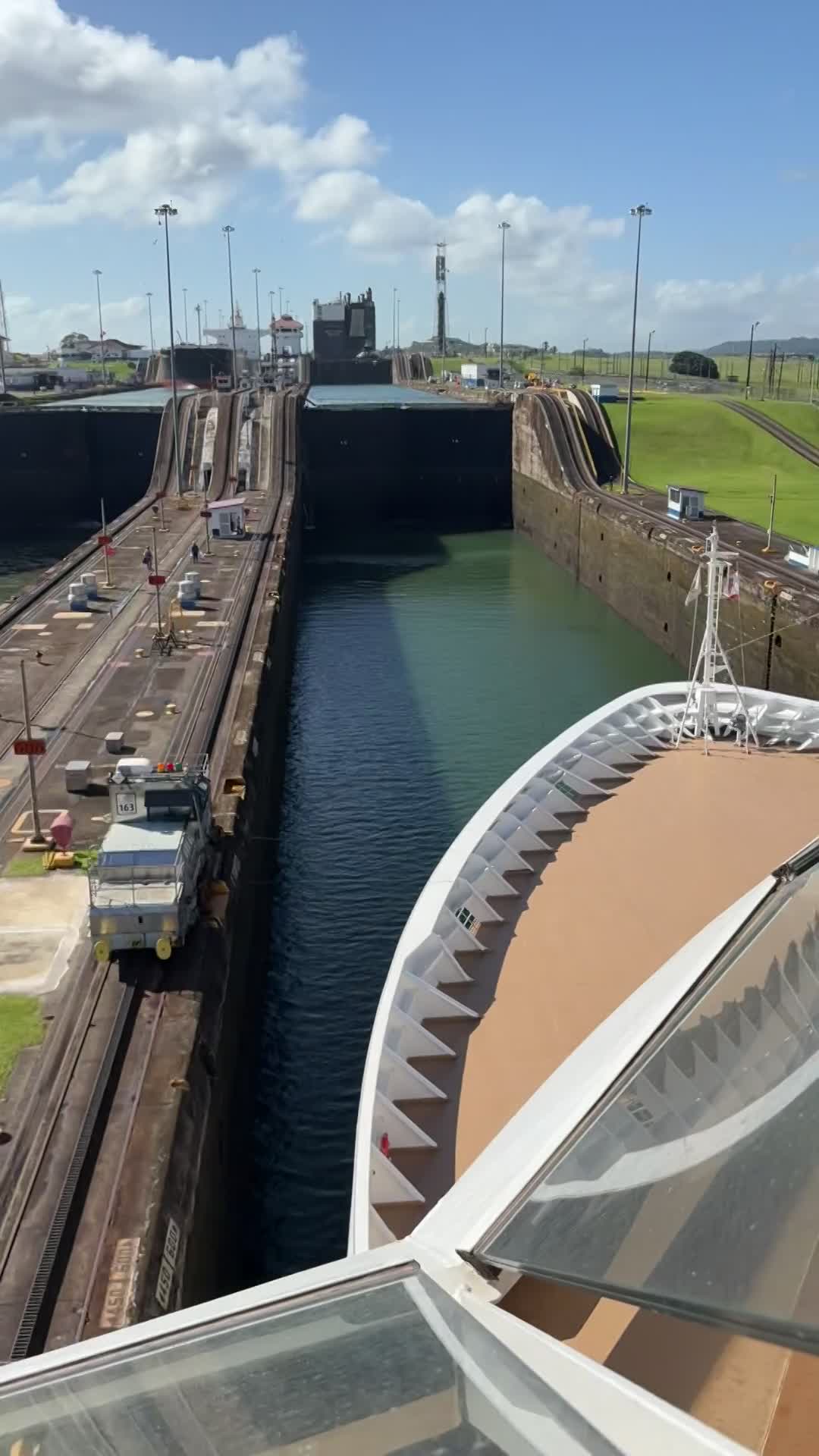Jim filmed a time lapse going into the Gatun locks. The canal was built by the US government starting in 1903 and finished in 1914. The Canal brings in $15,600,000 dollars per day. Which is about 40 ships per day.
