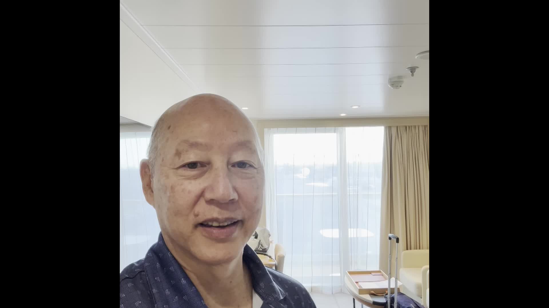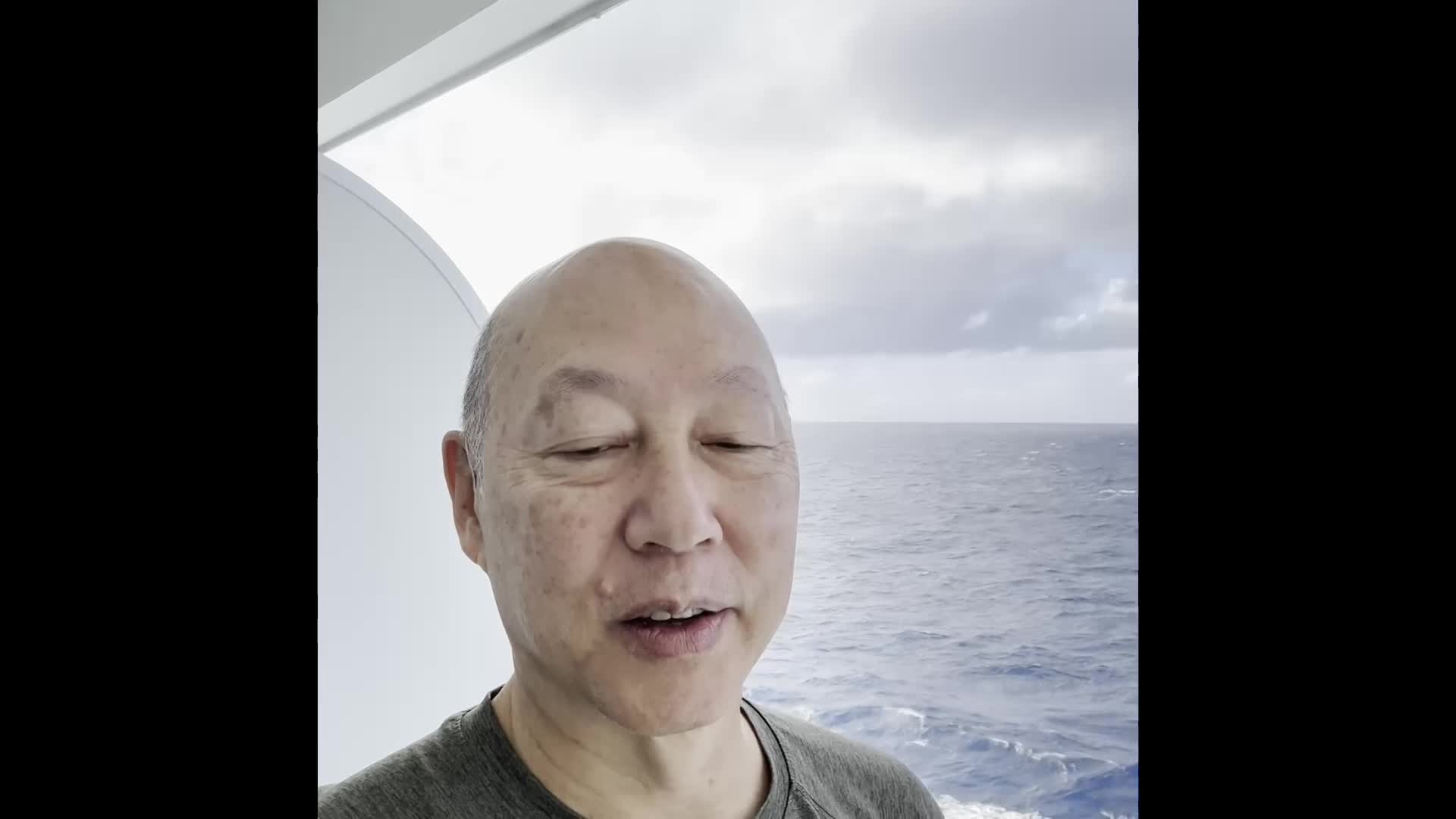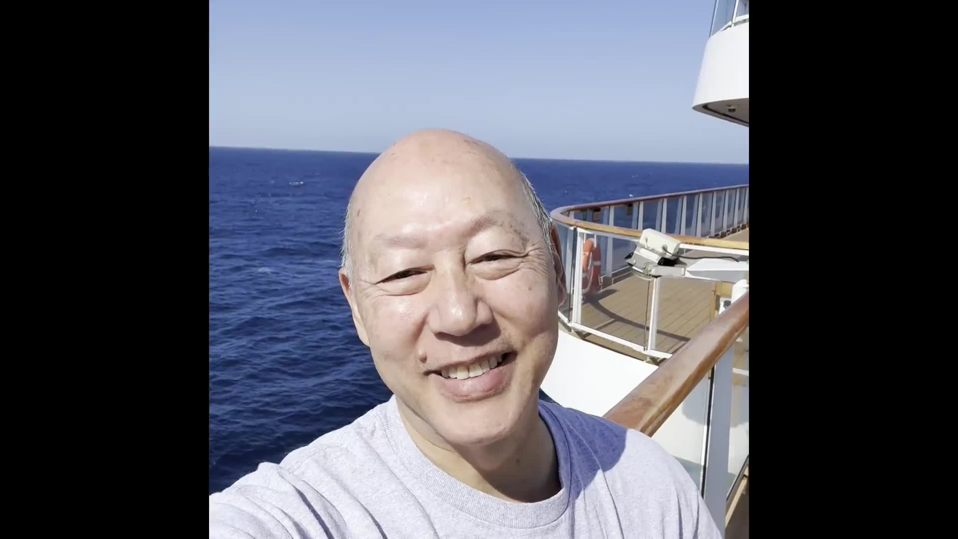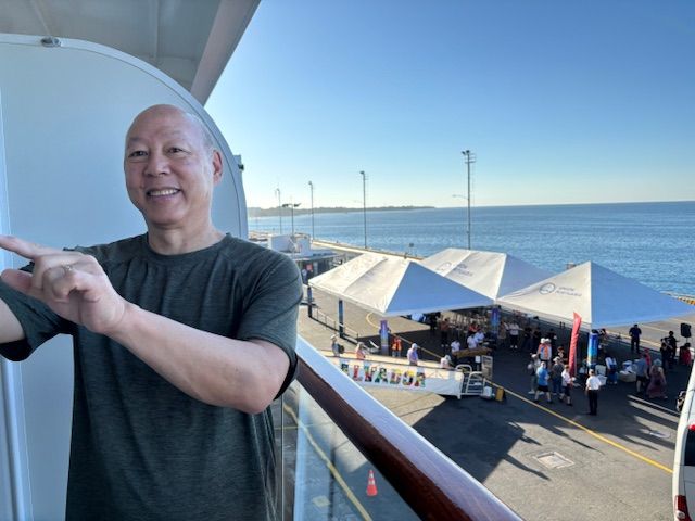 A whole day at sea. Took us a long time to get all of our "stuff" tucked away in this tiny space! There are a lot of "old" people on this boat. So, just our luck... the refrigerator didn't work, the toilet stopped working at a very inopportune time, and the TV remote didn't work! Everything sorted out by our cabin stewards Wayan and Nick who promptly fixed everything. Only about 250 of the passengers onboard are doing the world cruise. The rest of the passengers will disembark in LA and they will fill the boat back up to capacity of about 930. Forgot to mention that we did attempt to dance last night and tonight. Jody would have been disappointed with our performance for sure! We have many more nights on board to get it right!
