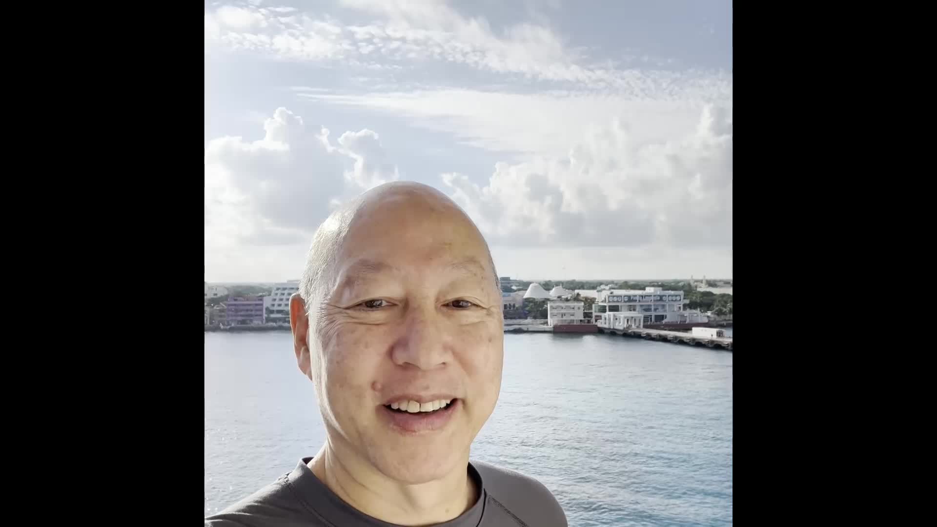 My selfie at sunset on our balcony in El Salvador.