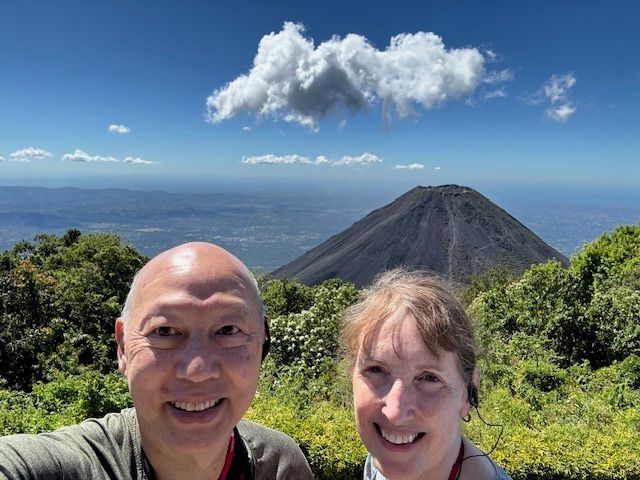 We hiked through the national forest and eventually found this view. The lake behind us is Lake Coatepeque of volcanic origin and is 50,000 years old.