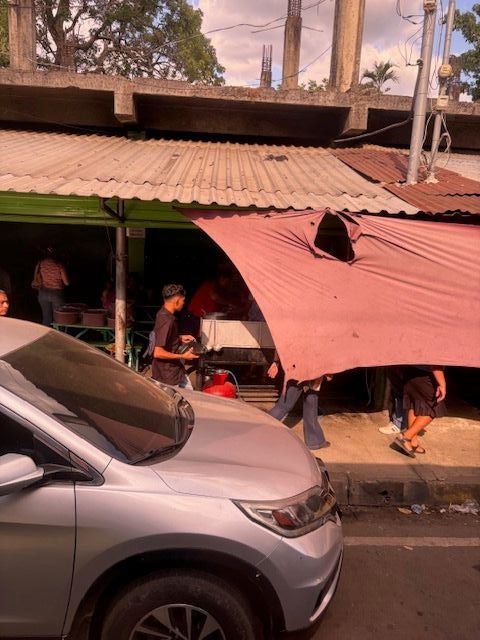 The pupusa is a traditional and popular street food here. It is a stuffed cake made from cornmeal or rice flour, filled with cheese, beans and fried pork. There were also community coleslaw and salsa. Thanks to Traci for the pictures. The kids were laughing at us for eating with a fork. The locals eat them with their hands.