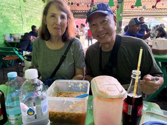 We decided to take the shuttle into town with our trivia friends, Traci and Vladan Jovanovic, to have some local food. As we came into the town, it was very poor appearing with lots of people around. Some passengers opted to stay on the bus and return to the ship. We went to this "restaurant" that was full of locals. They spoke very little English and we spoke very little Spanish.