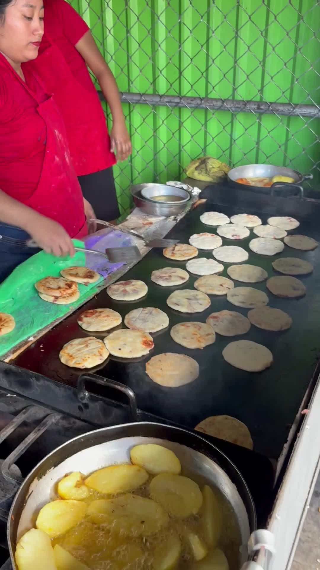 Pupusas being prepared right on the street. Total cost of the meal for 4 people (3 pupusas each, 2 beers, 1 bottled water and 1 coke) was $8.70. The haven't learned how to upcharge the tourists yet!