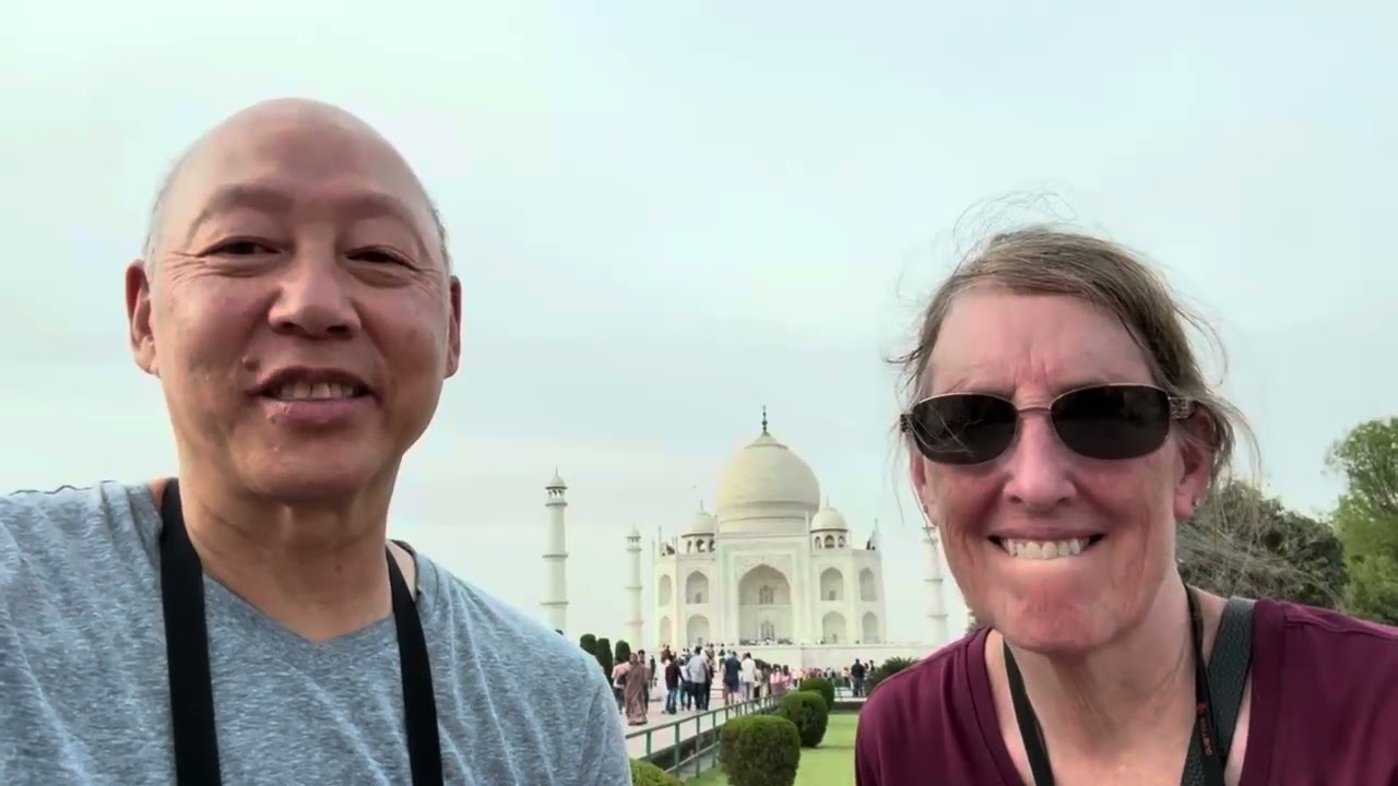 Jim's vlog: Early wake up to see the sunrise at the Taj Mahal, quick breakfast, then on to explore Fatehpur Sikri the former capital of the Mughal kingdom. The road to Jaipur was very busy and full of worshipper of shiva. Also passed a village where just about everyone works with stone. Arrived at our final hotel, the Leela Palace.
