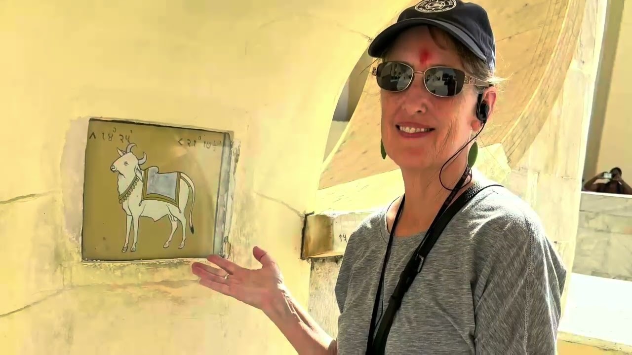 Jai Singh's observatory, Jantar Mantar built in the 17th century by the founder of Jaipur who, besides being the prince was also a soldier, astronomer and builder. The sundials are accurate to 7 seconds. He also had the Zodiac signs represented. Jim had me pose next to my Taurus the Bull!