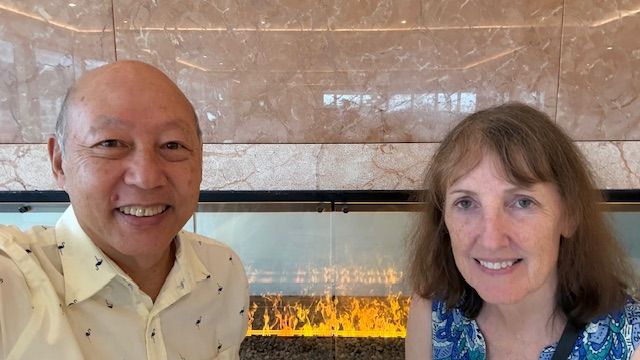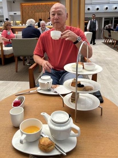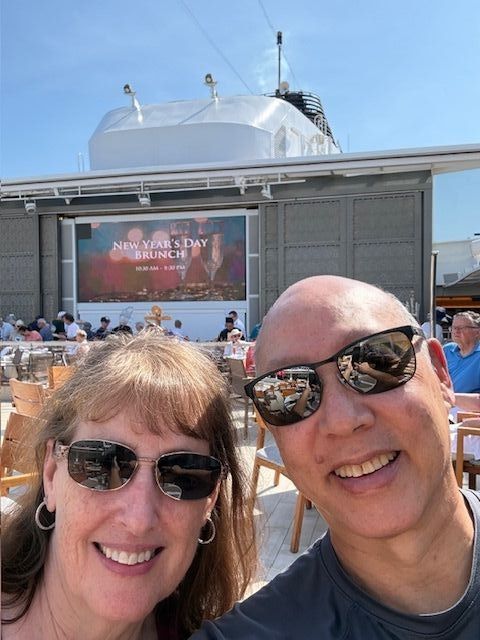 Jim made me get up at 7:00am for a 1 mile walk around the ship! We had a great day that included Ina beating Jim in Baggo, a tie at team trivia but losing in the tie breaker, a hand jive class, a strategy meeting for our boat building competition with our team, winners of the international date line trivia, SE Asia food for dinner, received a certificate of crossing the IDL, and an IDL dance party at the pool deck.