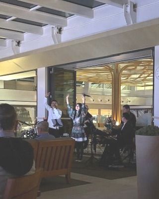 We had dinner with Astronaut Captain Mike Foreman and his wife Lorie at the Chef's Table. The menu was a 5-course tasting menu showcasing the flavors and textures of Japanese cuisine by guest Chef Pepi Anevski. The picture is our after-dinner entertainment duo, Innamorati (together in love) - Julia and Douglas McRae.
