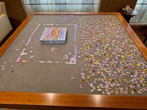 Lazy day at sea. We won team trivia and name that tune trivia today.