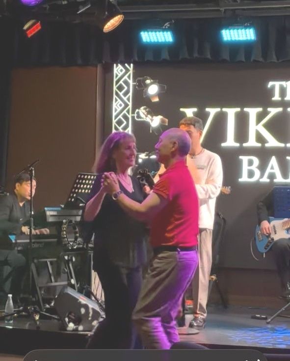 We both worked out today. Jim on the treadmill and Ina joined NIA by zoom. Then we went to the thermal baths, ice room then sauna. The band had Jim sing again tonight. Ina did not record for some unknown reason.