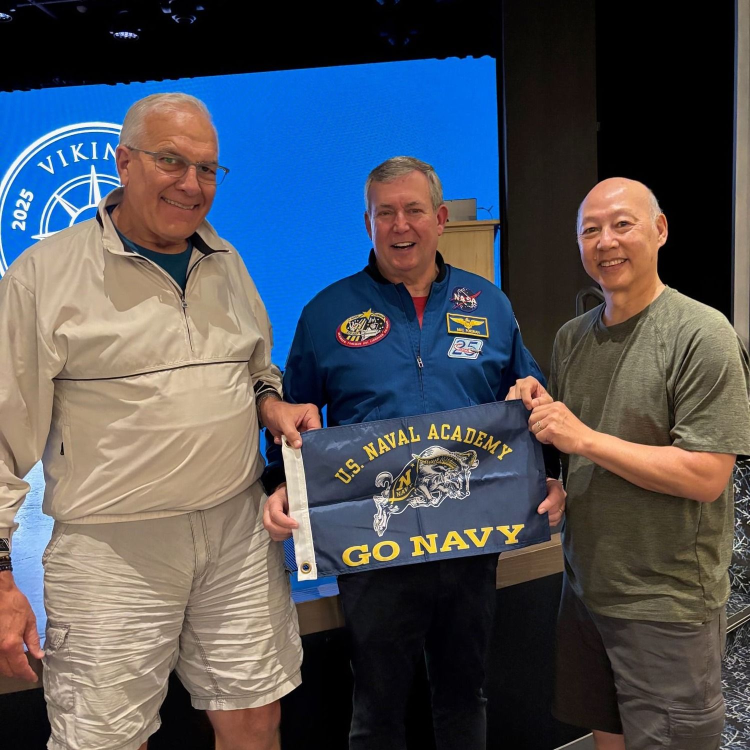 Guest lecturer is Captain Mike Foreman a USNA graduate and astronaut. He flew 2 missions on the Endeavor Space Shuttle to the ISS. He was in the class '79 and says he does indeed know Don Akiyama. Jim and David class of '81 had their picture taken with him after the lecture "How I Became a NASA Astronaut".