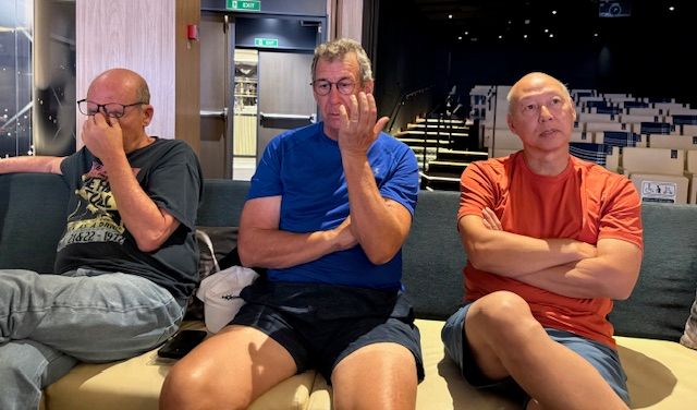 Jim's vlog: Crossed the International Date Line. Lecture by Astronaut Mike, hand jive class, trivia and dance party. What's not to like?